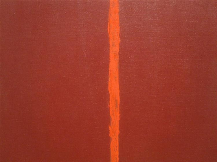 이 지점에서 리오타르는 반복적으로 바넷 뉴먼(Barnett Newman, 1905~1970)을 호출한다. 뉴먼의 회화는 전통적인 재현이나 기교를 거의 완전히 배제한다. 진중권 교수님이 지적하듯, 그의 작업에서는 이렇다 할 기법도, 붓질도 중요하지 않다. 이러한 비기교성은 기술적 결핍이 아니라, 회화가 더 이상 현실을 묘사하지 않겠다는 선언이다. 재현의 침묵을 통해 뉴먼의 회화는, 예술로는 도저히 묘사할 수 없는 것이 이 세계에 존재함을 말한다.⁴
